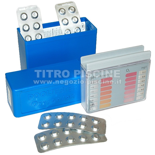 Nel kit ci sono anche 20 pastiglie per la misurazione dell'ossigeno attivo e 20 pastiglie per la misurazione del valore pH.