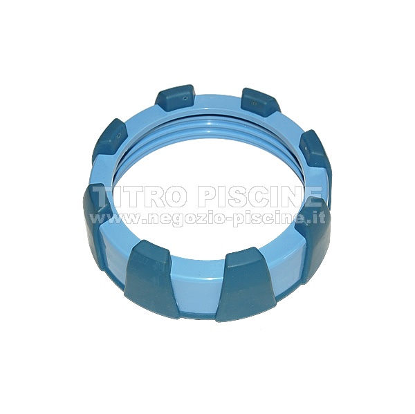 La nuovissima madrevite per il contenitore della cella è di colore blu chiaro con prese in gomma blu che facilitano l'apertura. È comunque possibile utilizzarla anche per tutte le versioni più vecchie dei contenitori per le celle del clorinatore, hanno infatti le stesse misure e la stessa filettatura.