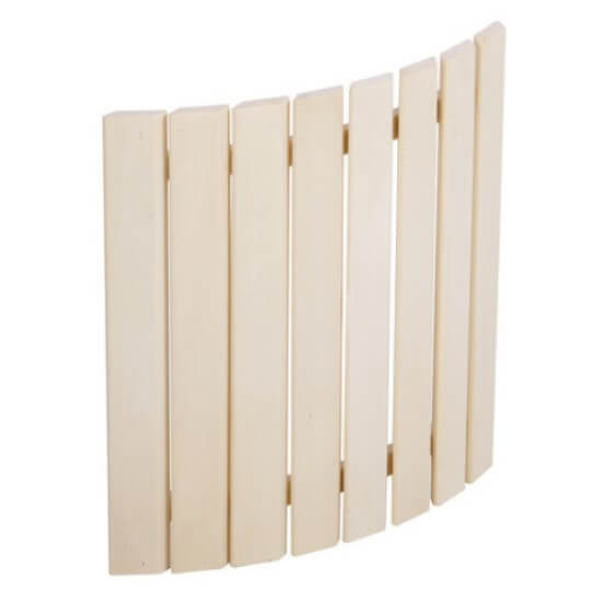 Materiale naturale: legno di pioppo resistente a calore e umidità, perfetto per l’ambiente della sauna.