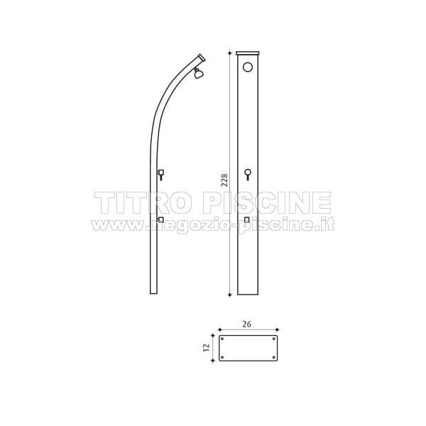 La leggerezza e la forma visibilmente accattivante della doccia solare SPRING assicurano che la doccia trovi facilmente il suo posto in ampi giardini e terrazze. È realizzata in alluminio, combinato con acciaio inossidabile. Il suo grande serbatoio d'acqua con una capacità di 30 litri è riscaldato solo dal sole, quindi la doccia solare SPRING è ecologica al 100%. Si puo' collegare facilmente a qualsiasi tubo dell'acqua. Capacità: 30 l Altezza doccia: 228 cm Pressione dell'acqua consentita: 2 bar In caso di pressione sulla tubazione dell'acqua superiore ai 2 bar, è necessario installare un limitatore di pressione prima della doccia o valvola di riduzione. Garanzia 2 anni.