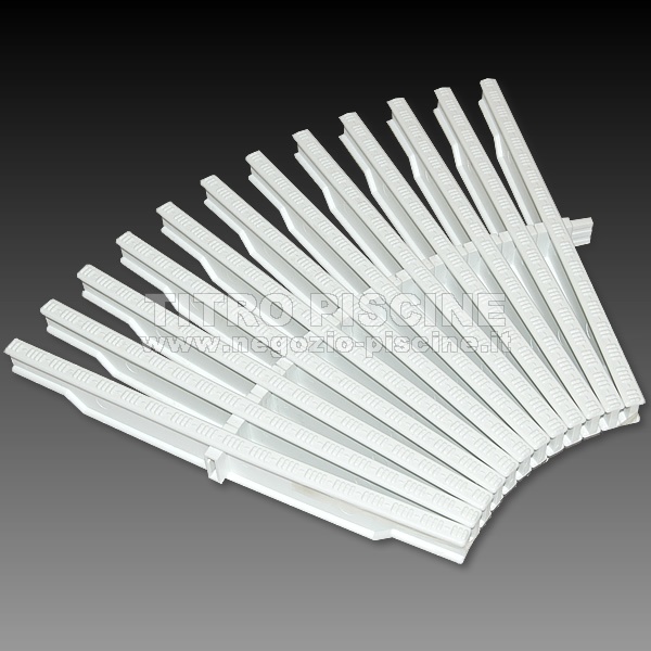 La griglia per le curvature viene realizzata dai singoli elementi che si congiungono in un punto solo al centro del singolo elemento. Per questo le griglie di questo tipo si possono utilizzare per canali di sfioro con curvature di diverso raggio.