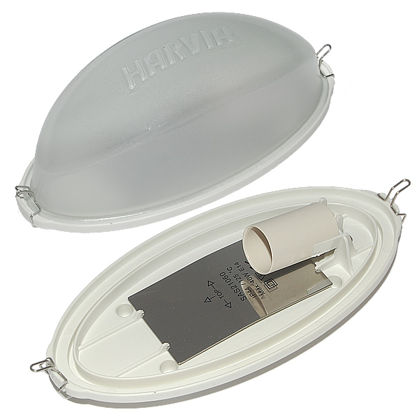 Lampada in vetro ovale per saune secche, resistente alla temperatura massima di 125°C.