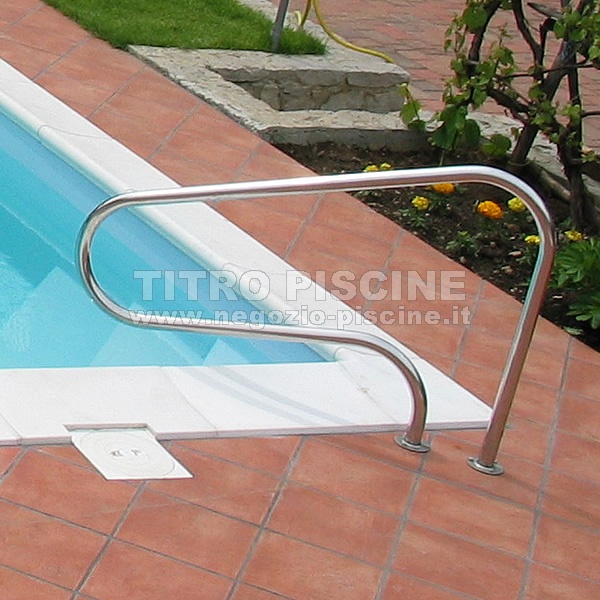 Maniglia molto bella di forma curva e allungata da utilizzare soprattutto vicino alle scale per facilitare l'entrata e l'uscita dalla piscina o dal whirlpool (idromassaggio).