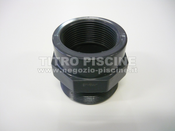 Il materiale di raccordo in PVC può essere fornito in varie misure. La misura indicata, per es. 3" esterno - 2" interno, significa che è possibile applicare il riduttore, che viene avvitato nella parte di congiunzione e corrisponde alle misure e alla filettatura.