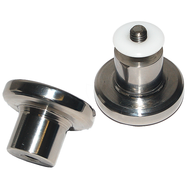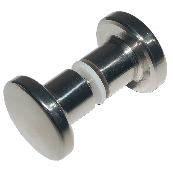 Maniglia INOX in due parti (coppia) per porte delle saune a vapore (saune turche), che comprende la vite e le basi di protezione in plastica.