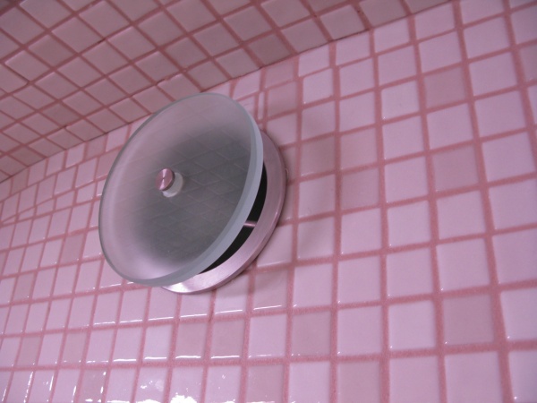 Ventilatore Inox resistente all’acqua per sauna a vapore, con parte frontale in vetro affumicato.