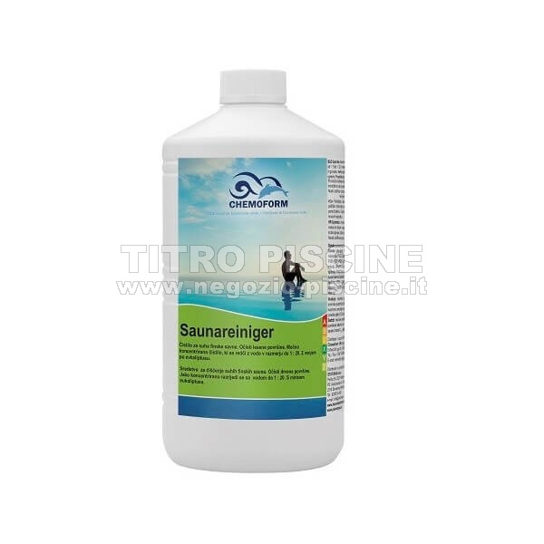 Prodotto per la pulizia delle saune secche in legno: saune finlandesi, saune infrarossi, ecc. (nome originale: Saunareinger). Prima dell'utilizzo va diluito in rapporto da 0,3 dl fino a 1 dl per 1 l d'acqua. Imballaggio di 1 l.