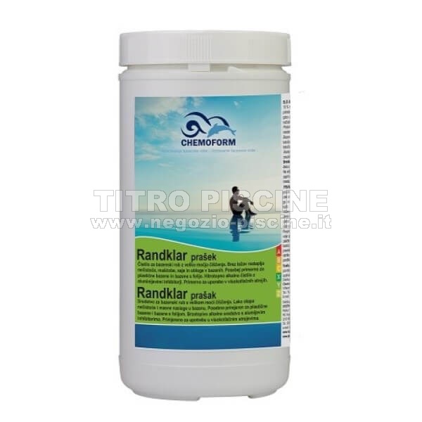 Utilizzo: per la pulizia del bordo della piscina abbassare il livello dell'acqua il più in basso possibile dal bordo da pulire. Mescolate il prodotto Randklar in un secchio di plastica con acqua in proporzione 1:1. Con questa soluzione spazzolate il bordo della piscine, lasciate agire, strofinate nuovamente con un panno spugnoso. Sciacquate poi il bordo con l'acqua. Se si tratta di sporco resistente ripetete la procedura oppure lasciate agire il prodotto più a lungo. Poi strofinate e sciacquate bene con acqua.