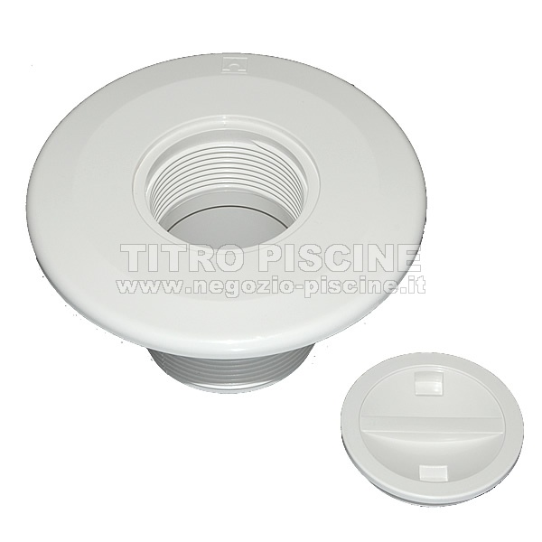 Note: in una delle foto a fianco è rappresentato il raccordo di aspirazione base con tappo di chiusura installato nel passante a muro in una piscina di cemento con mosaico.