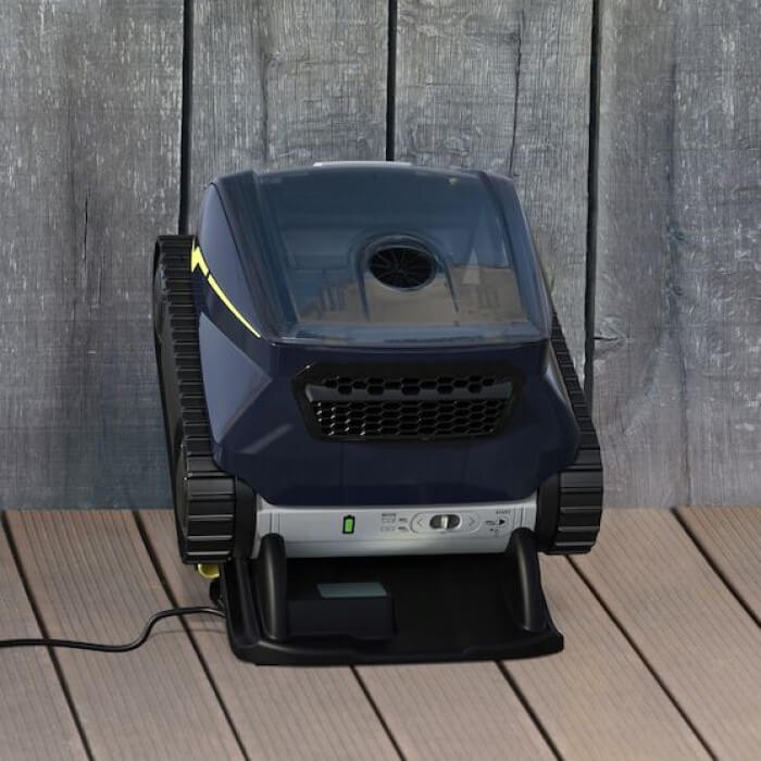 Il robot piscina wireless è dotato di un sistema di trazione a cingoli con più motori per affrontare qualsiasi superficie interna, garantendo copertura uniforme e movimento agile.