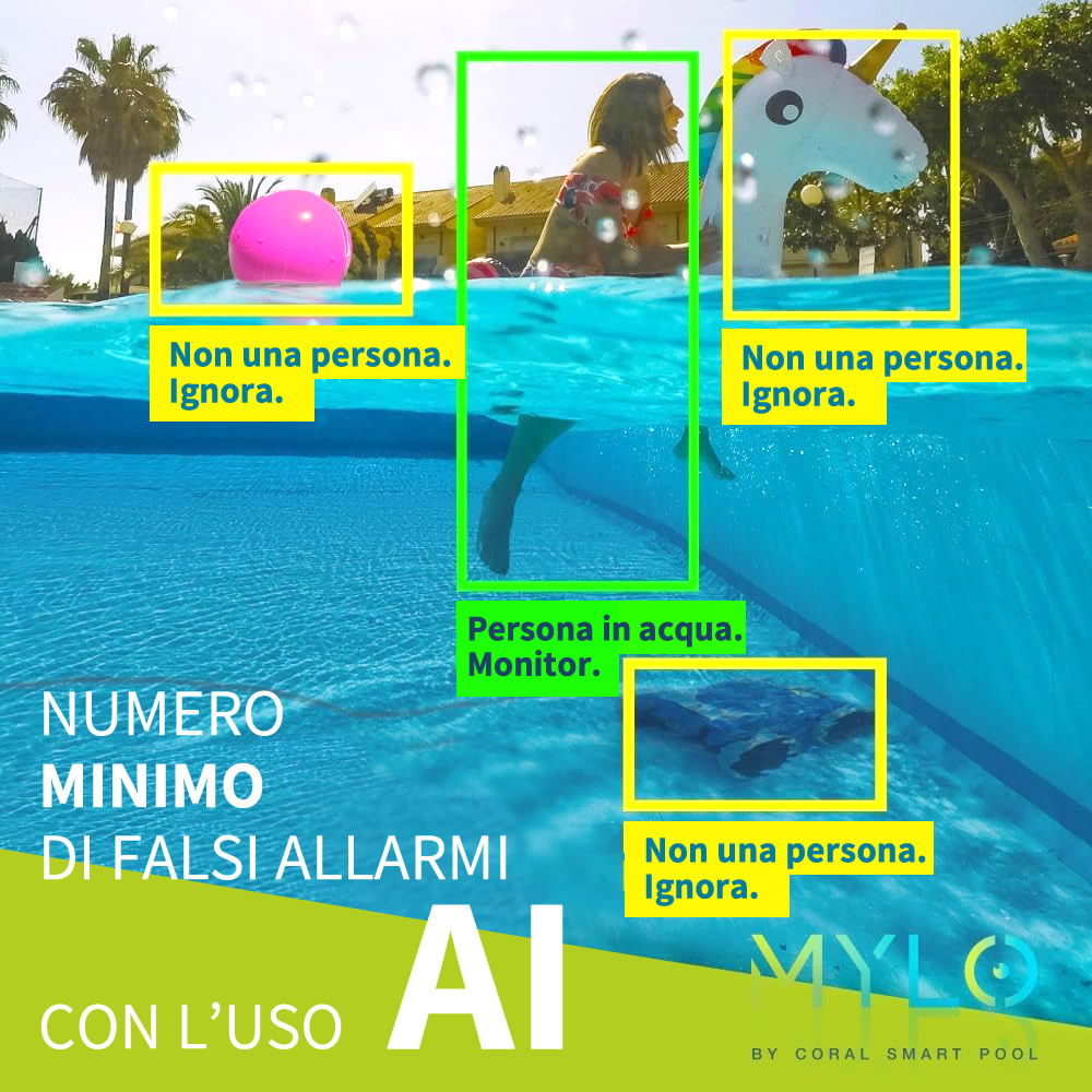 L'unico dispositivo con allarme automatico per una maggiore sicurezza in piscina, che utilizza l'intelligenza artificiale e le telecamere per monitorare la situazione in piscina in tempo reale. Il sistema di allarme automatico riconosce una persona che sta annegando e avvia un avviso o un allarme acustico per segnalare scenari pericolosi. In questo modo, il dispositivo può prevenire l’annegamento e migliorare la sicurezza in piscina.