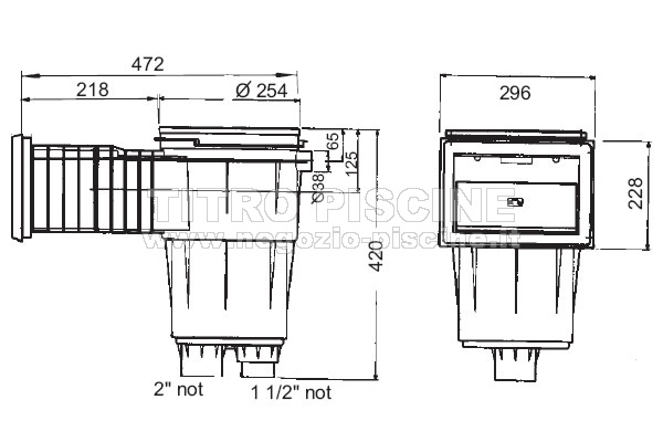 Note: è necessario collegare gli skimmer al depuratore attraverso tubi di collegamento e materiale di raccordo appropriati; consigliamo pertanto di consultare anche la sezione "Materiale di raccordo in PVC".