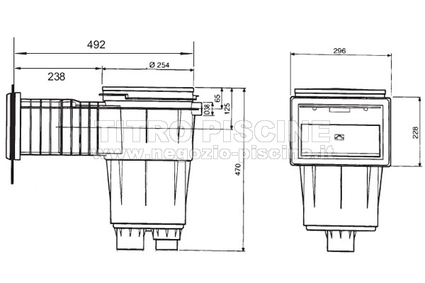 Nota: è necessario collegare gli skimmer al depuratore attraverso tubi di collegamento e materiale di raccordo appropriati; consigliamo pertanto di consultare anche la sezione "Materiale di raccordo in PVC".