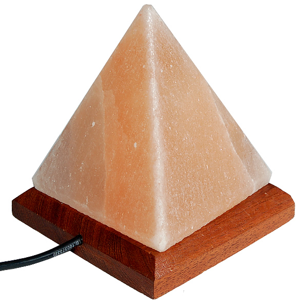 Lampada di sale naturale PIRAMIDE, realizzata con cristalli di salgemma provenienti dalle miniere dell'Himalaya, dove si sono formati diverse migliaia di anni fa.