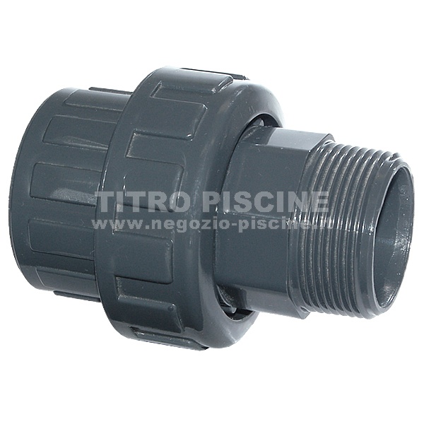 Bocchettone in PVC con presa d'incollaggio interna e filettatura esterna. Viene utilizzata nei punti in cui preferite avere la possibilità di smontare parte dell'impianto se necessario, avvitandolo poi nuovamente nella filettatura (raccordi con filettatura interna, pompe varie, valvole a 6 vie etc.).