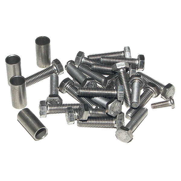 Kit di viti con distanziatori per maschera inox, piastra di supporto del controcorrente e flangia con guarnizioni.