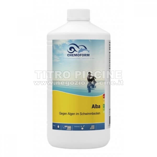 Primo dosaggio: 100 ml ogni 10 m3 d'acqua. Ogni settimana è previsto il dosaggio di 50 ml per 10 m3 d'acqua o ogni 14 giorni 100 ml per 10 m3. Sciogliete innanzitutto l'alghicida in un secchio d'acqua e poi versatelo in acqua lentamente lungo il bordo della piscina.